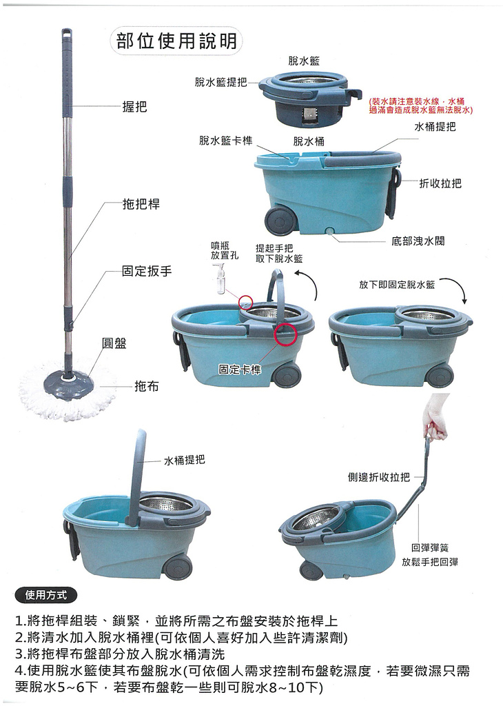 夏夏叫-新潮流洗脫拖雙輪獨立拖把桶-下壓自動脫水-旋轉拖把1桿3布超值組-12